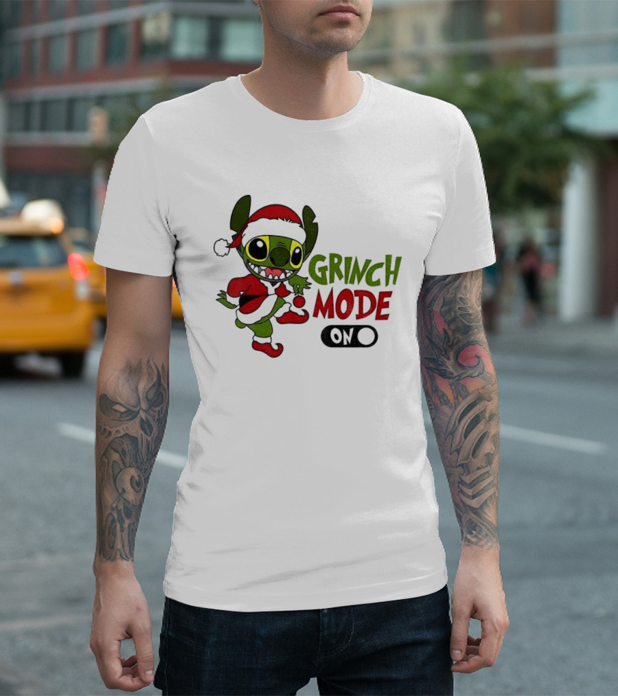 Stitch Grinch Santa Grinch Mode Merry Christmas Turn On T-Shirt