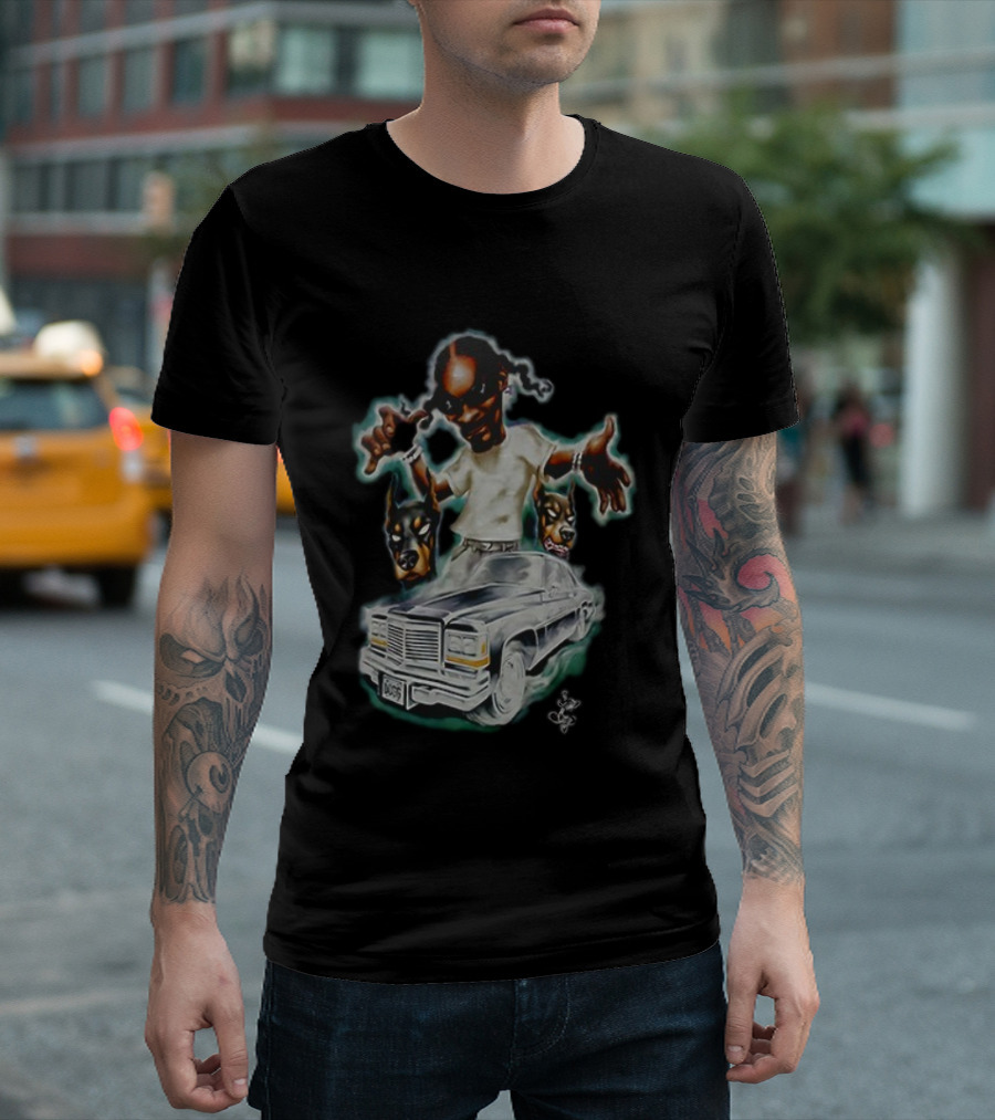 Snoop Dogg Caricature Posing With Car And Dogs T-Shirt