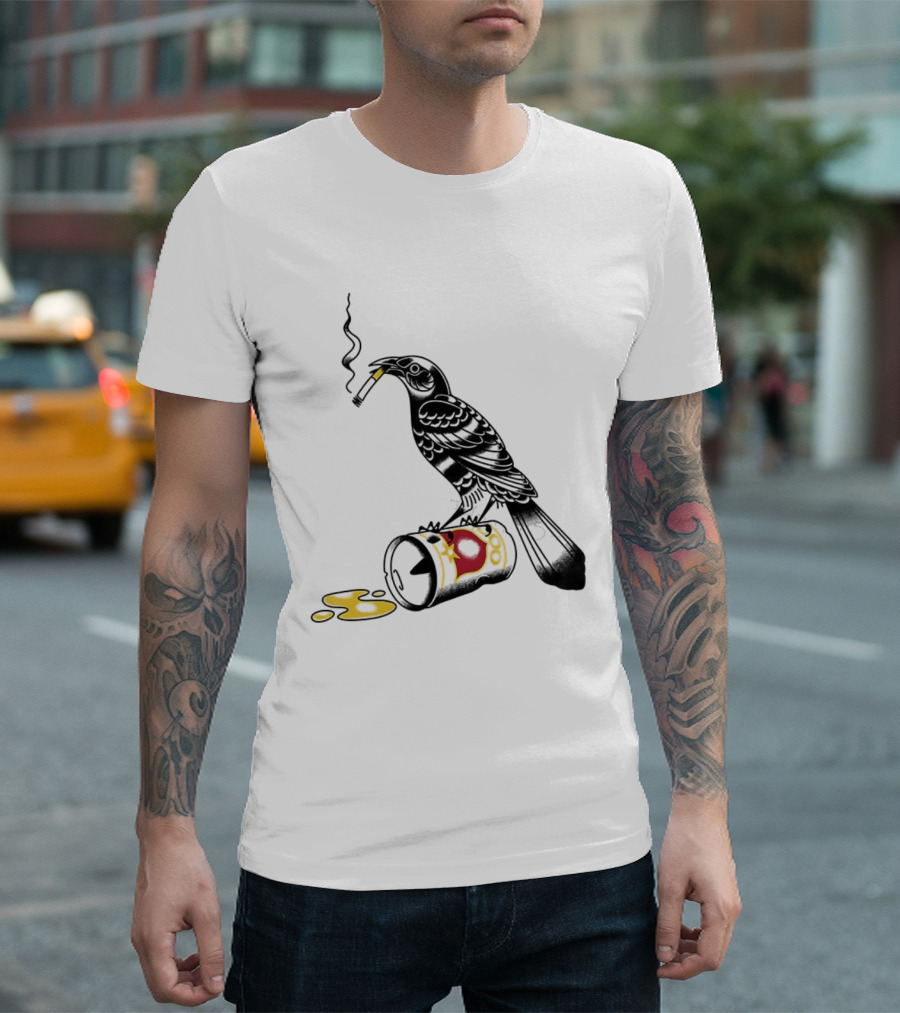 Trashy Grackle Smoking Bird With Spill Can T-Shirt