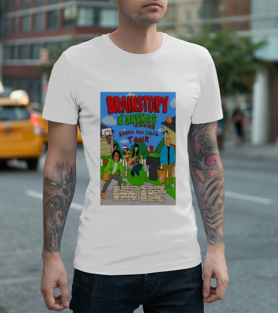 Brainstory É Arenas Twin Seas Broke Ass Xmas Tour Santa Barbara San Jose Los Angeles 2025 T-Shirt
