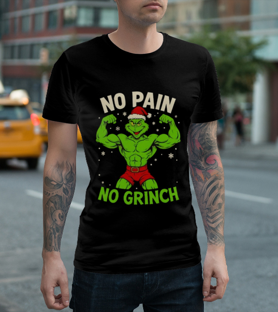 No Pain No Grinch Christmas Gym Santa Hat Muscle Fitness T-Shirt