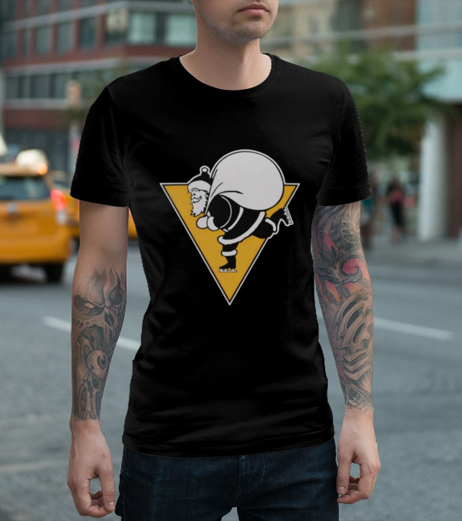 Santa Skates Ugly Christmas Penguin Triangle Santa Claus Skating Sack T-Shirt