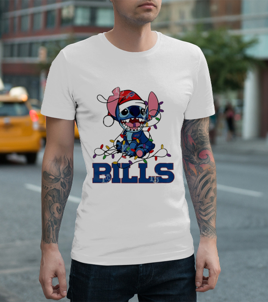 Buffalo Bills Christmas Lights With Stitch In Santa Hat T-Shirt