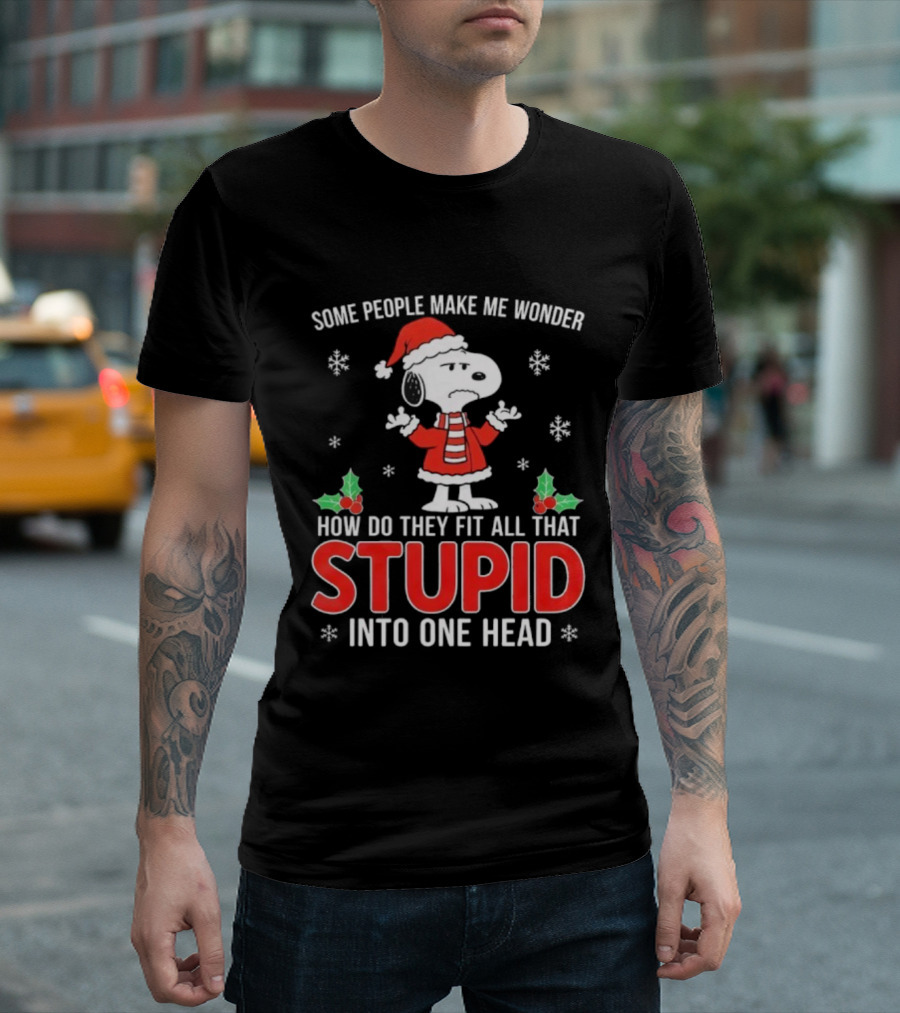 Snoopy Christmas Some People Make Me Wonder How Do They Fit All That Stupid Into One Head T-Shirt