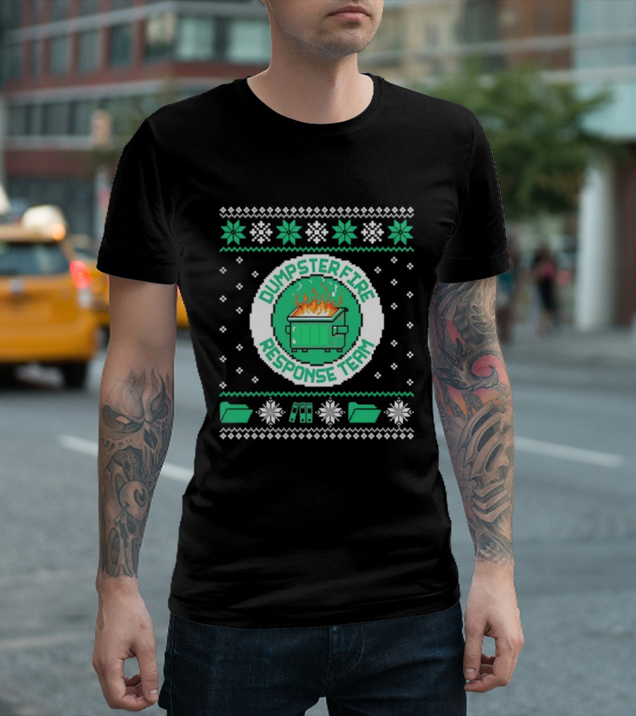 Dumpster Fire Response Team Ugly Christmas Sweater Snowflakes Retro T-Shirt
