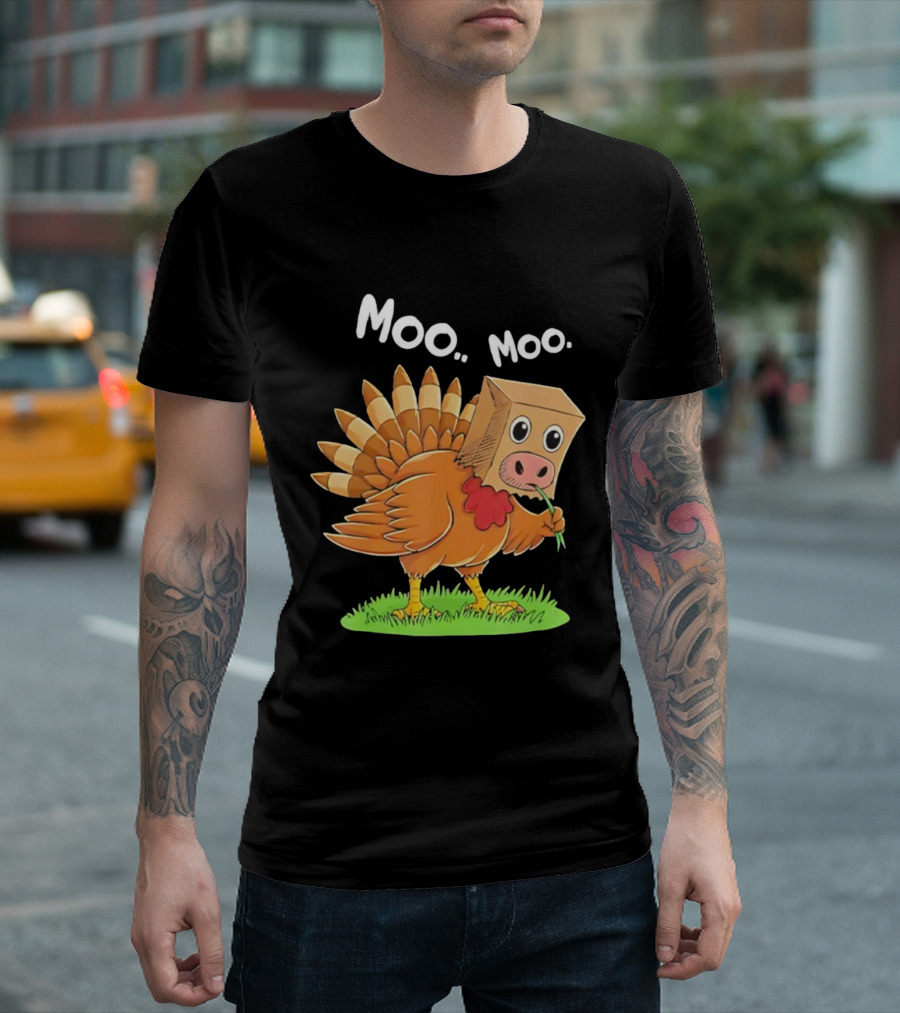 Turkey Cow Moo Moo Thanksgiving Funny T-Shirt