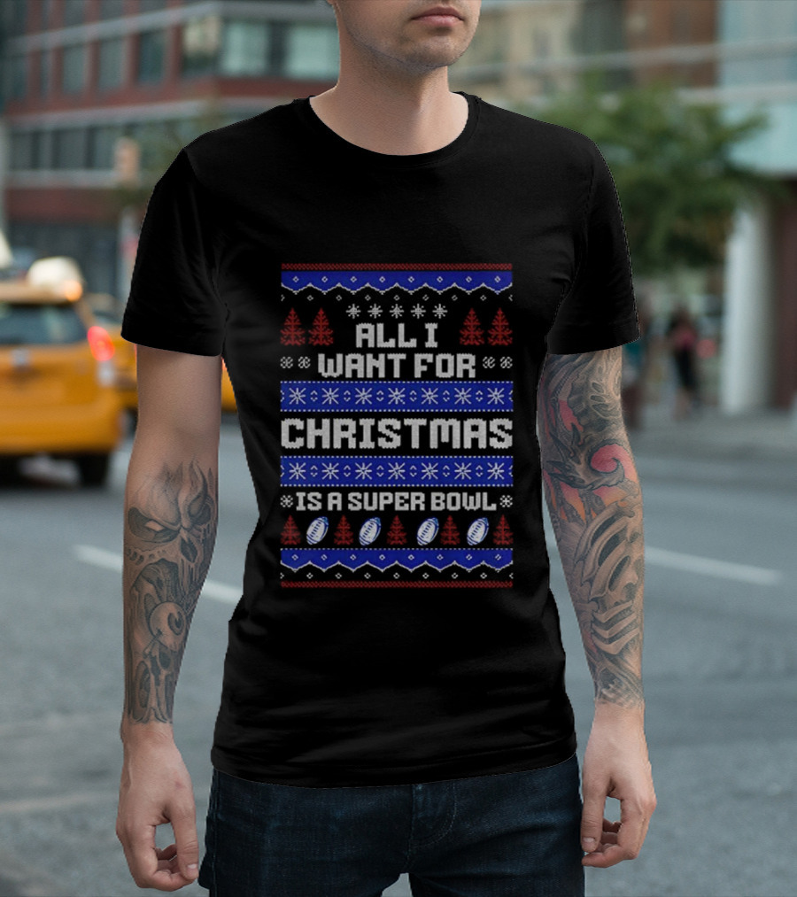 Buffalo Bills All I Want For Christmas Is A Super Bowl Ugly Christmas 2025 T-Shirt