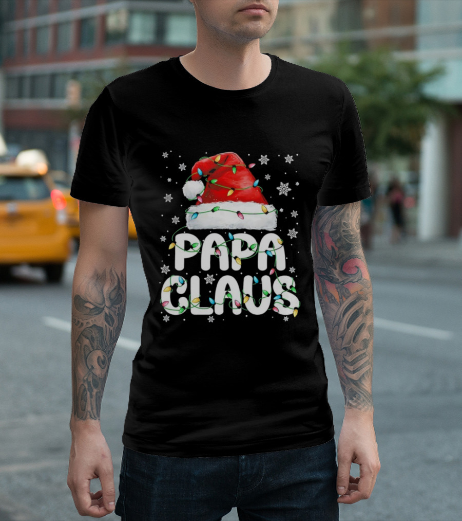 Papa Claus Santa Hat With Christmas Lights Holiday Stars T-Shirt