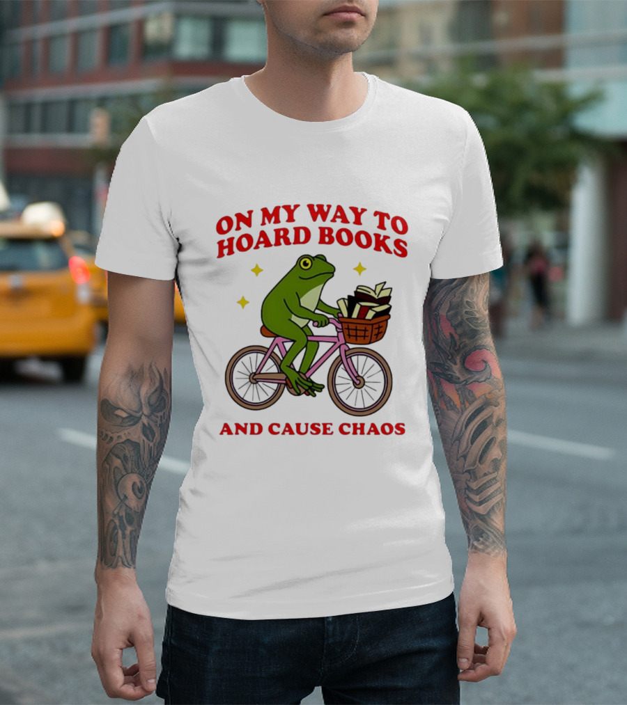 Frog On Bicycle Journey To Hoard Books And Cause Chaos T-Shirt