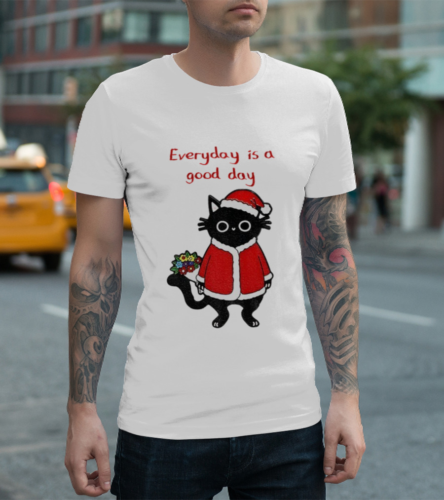 Everyday Is A Good Day Black Cat Santa Merry Christmas T-Shirt