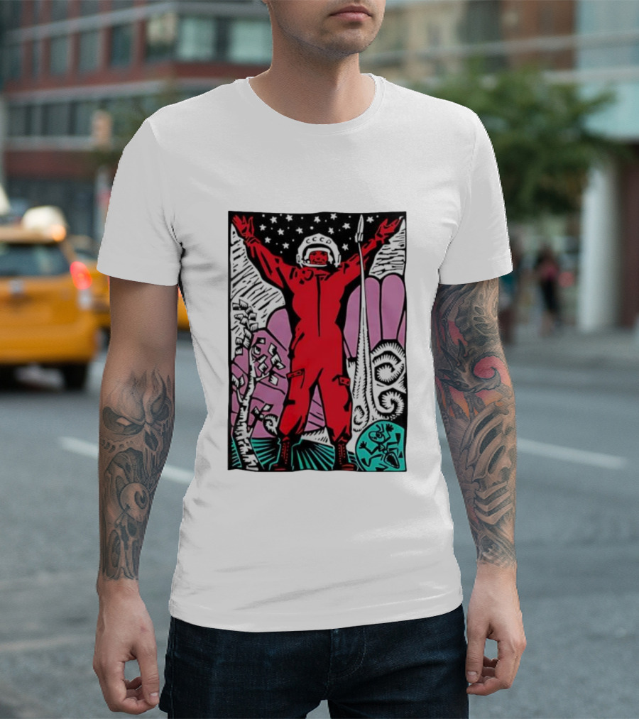 CCCP Soviet Space Hero Cosmonaut With Rocket Launch And Stars T-Shirt