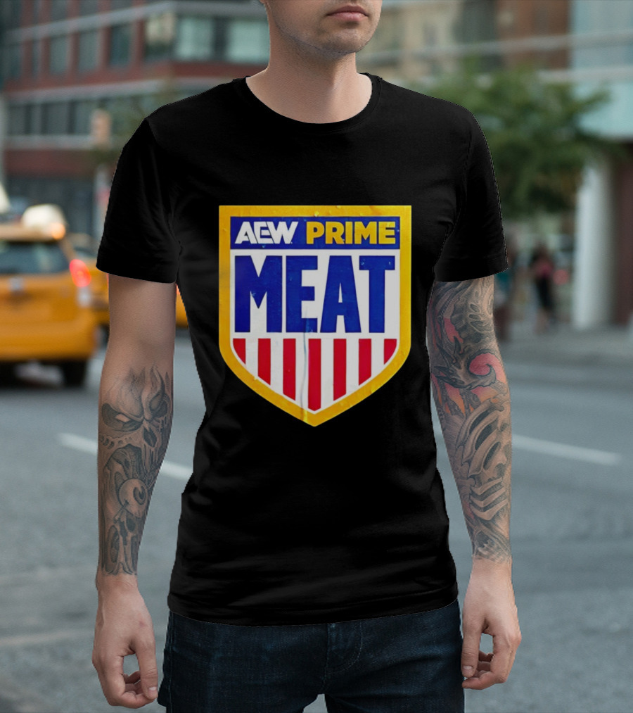 AEW Prime Meat Shield Bold Lettering And Stripes T-Shirt