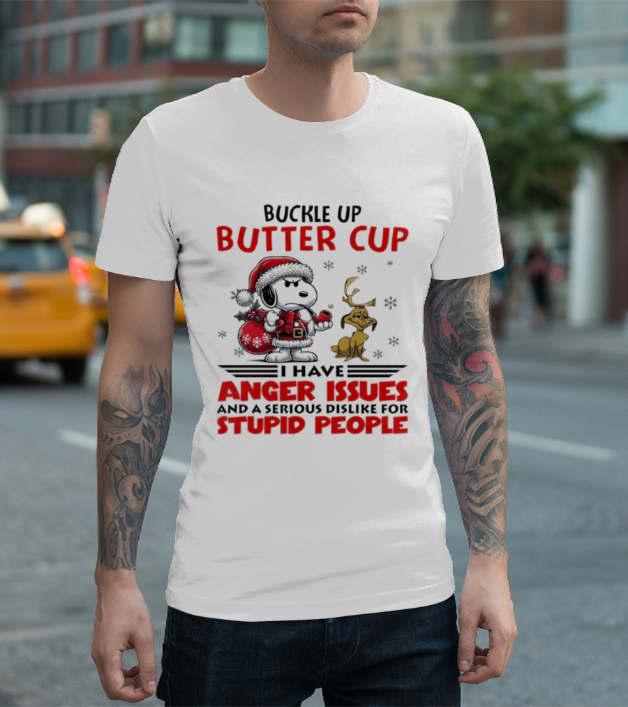 Buckle Up Buttercup Anger Issues Serious Dislike Stupid People Snoopy Reindeer T-Shirt