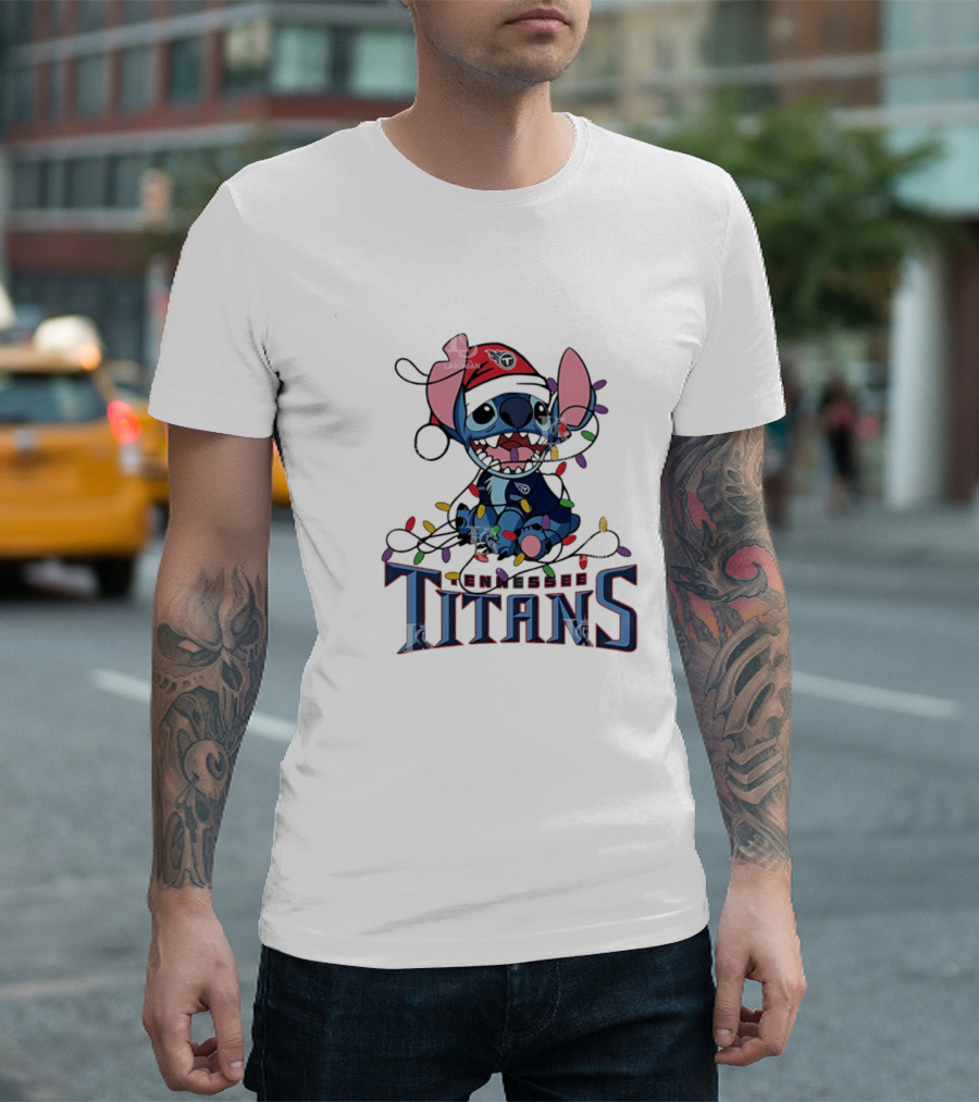 Tennessee Titans Stitch Christmas Lights Ornament T-Shirt