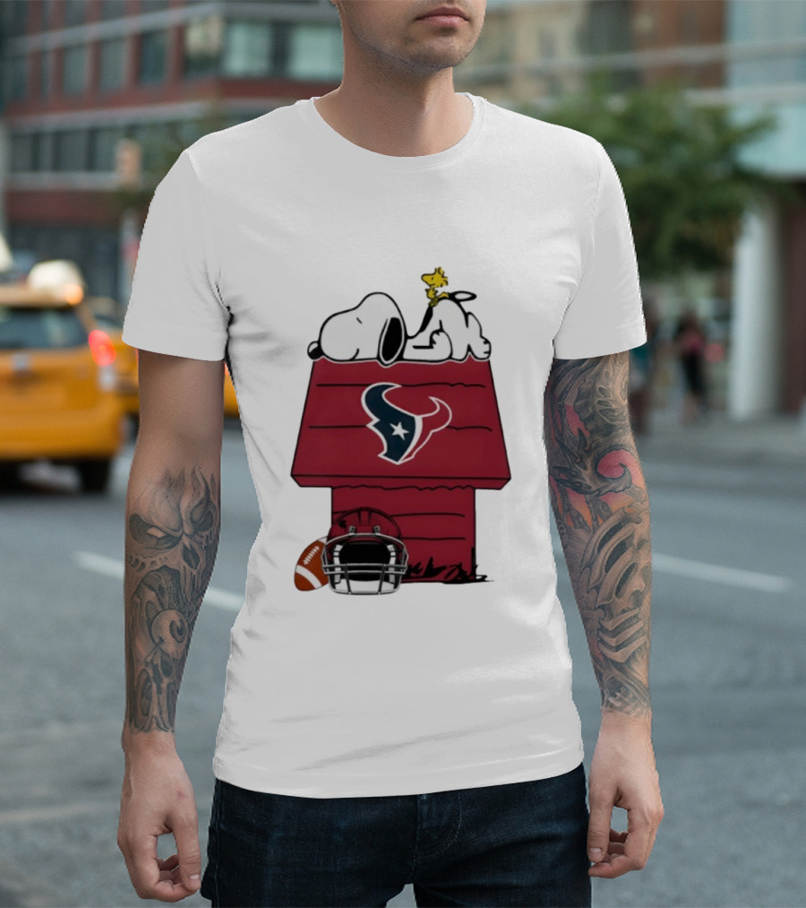 Houston Texans Snoopy Woodstock Peanuts Football House Doghouse Helmet T-Shirt