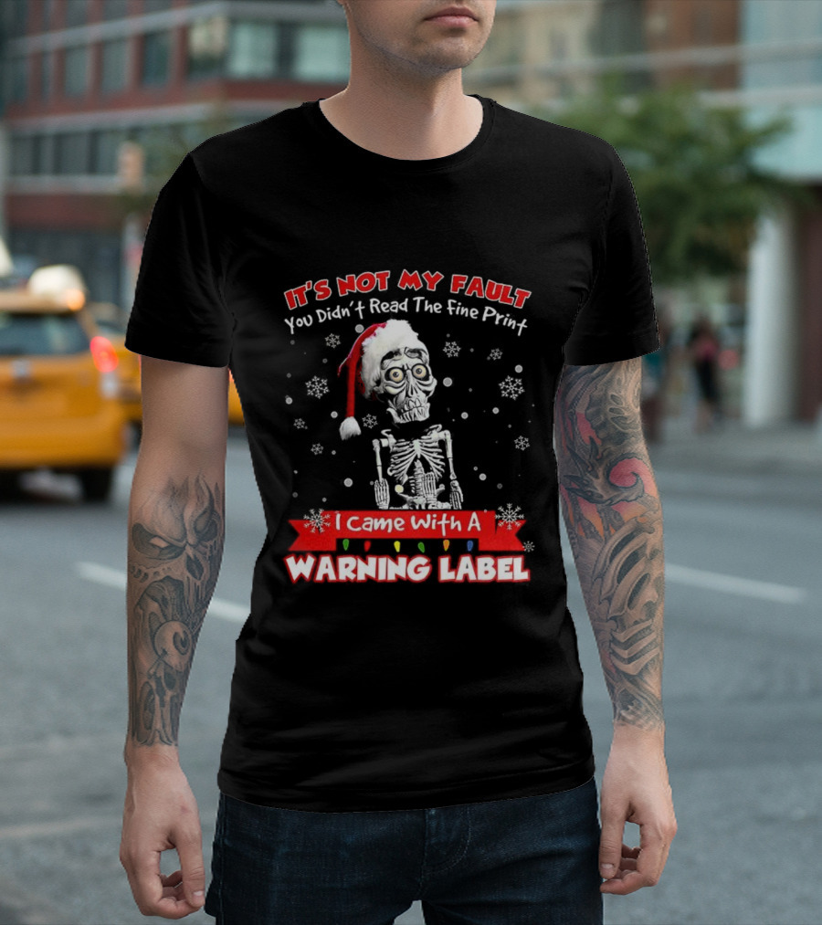 Skeleton It's Not My Fault I Came With A Warning Label Christmas T-Shirt