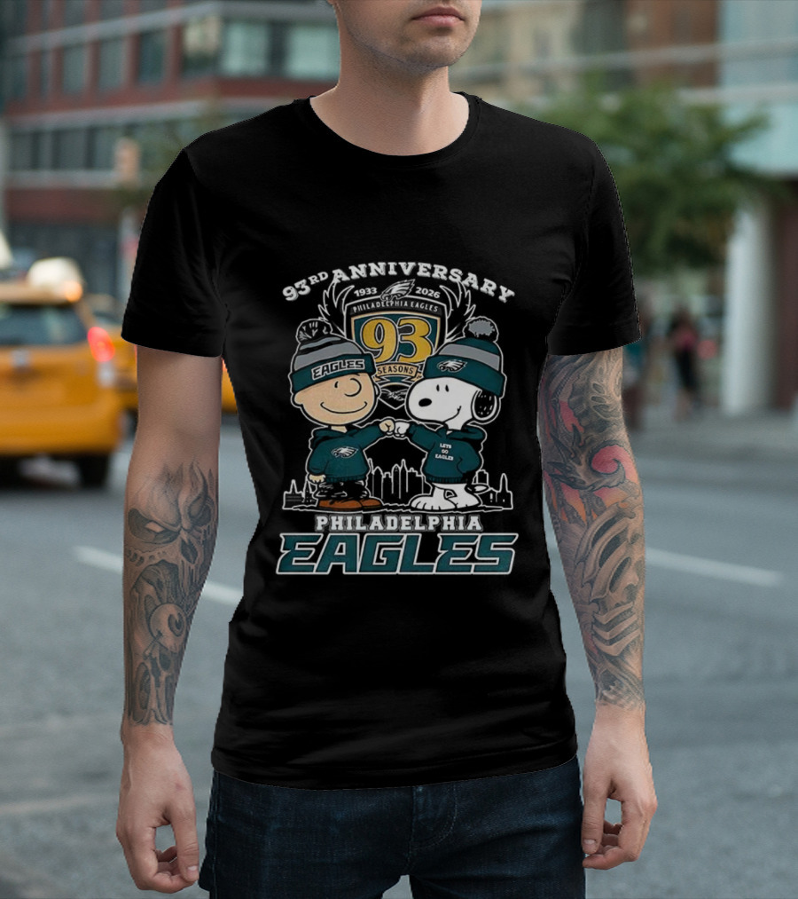 Snoopy Charlie Brown Philadelphia Eagles 93rd Anniversary 1933-2026 T-Shirt