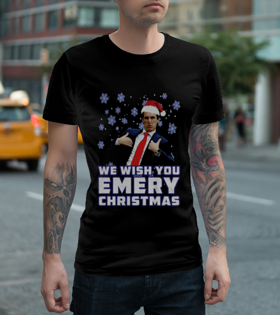 Unai Emery Santa Hat We Wish You Emery Christmas Holiday Design T-Shirt