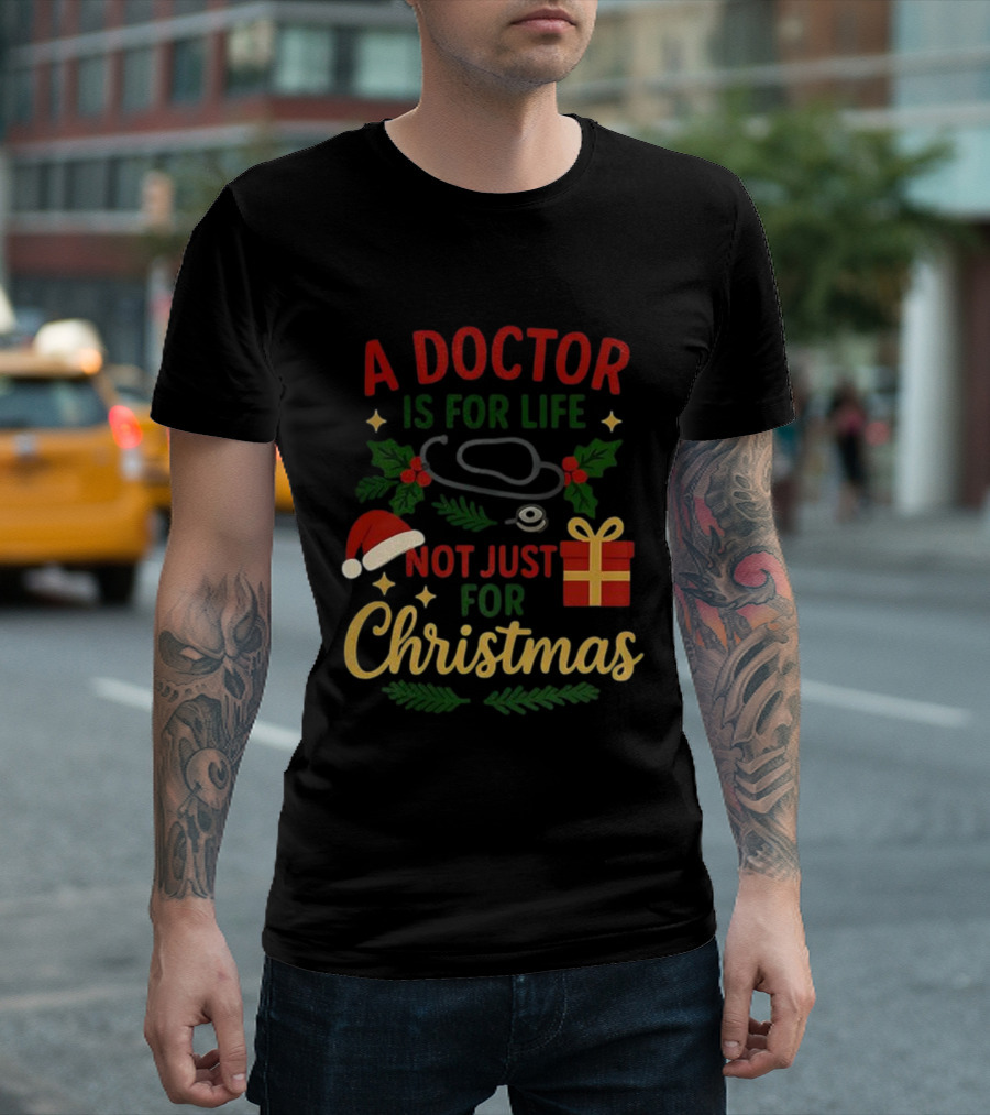 A Doctor Is For Life Not Just For Christmas Stethoscope Gift And Holly Santa Hat T-Shirt