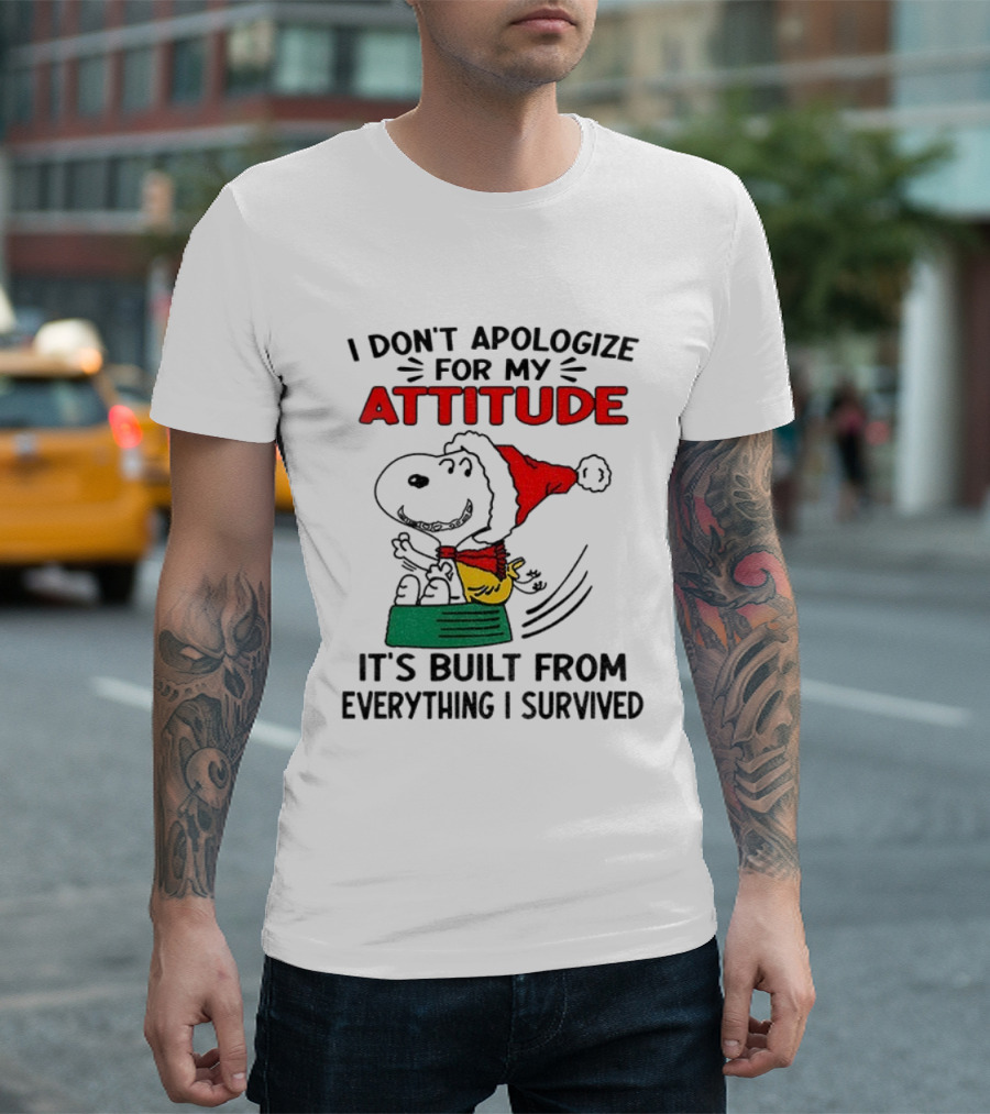 Snoopy Santa Hat I Don't Apologize For My Attitude It's Built From Everything I Survived Christmas T-Shirt
