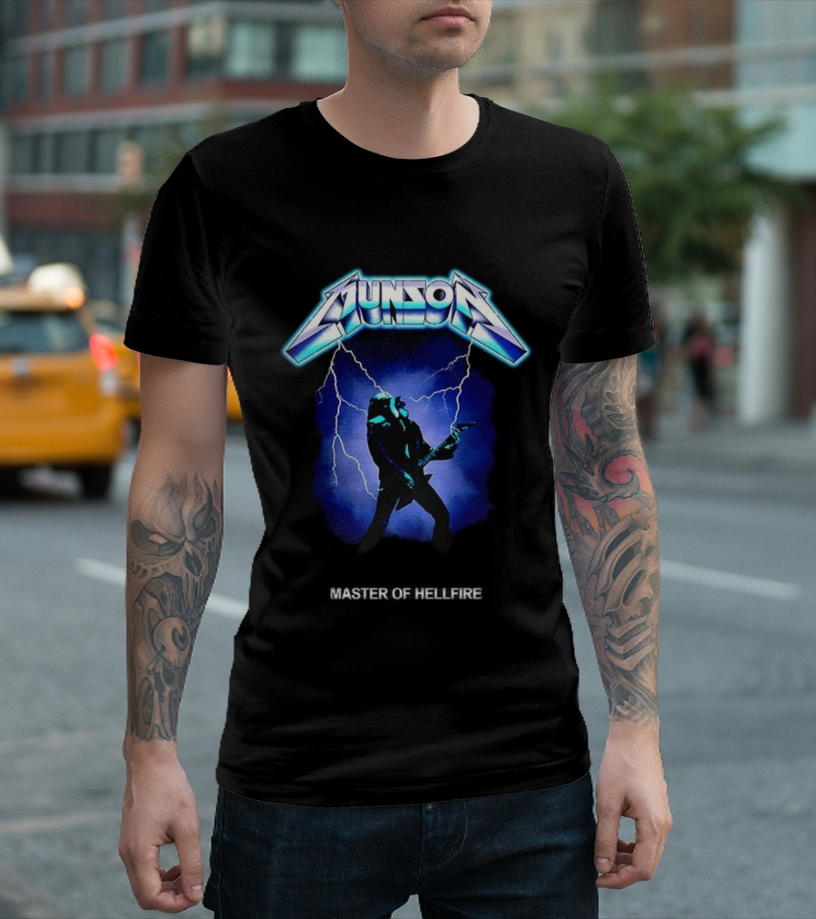 Munson Master Of Hellfire Dungeons And Dragons X Stranger Things Electric Guitar Lightning T-Shirt