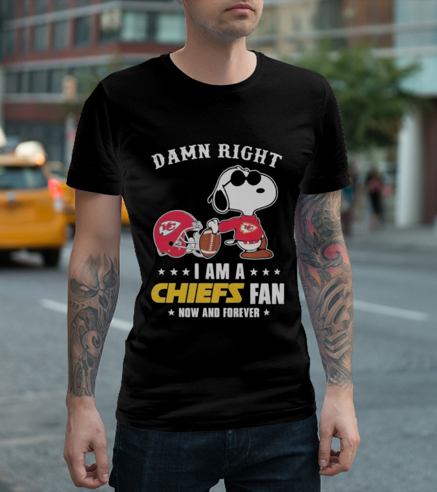 Damn Right I Am A Chiefs Fan Now And Forever Snoopy Kansas City Chiefs T-Shirt