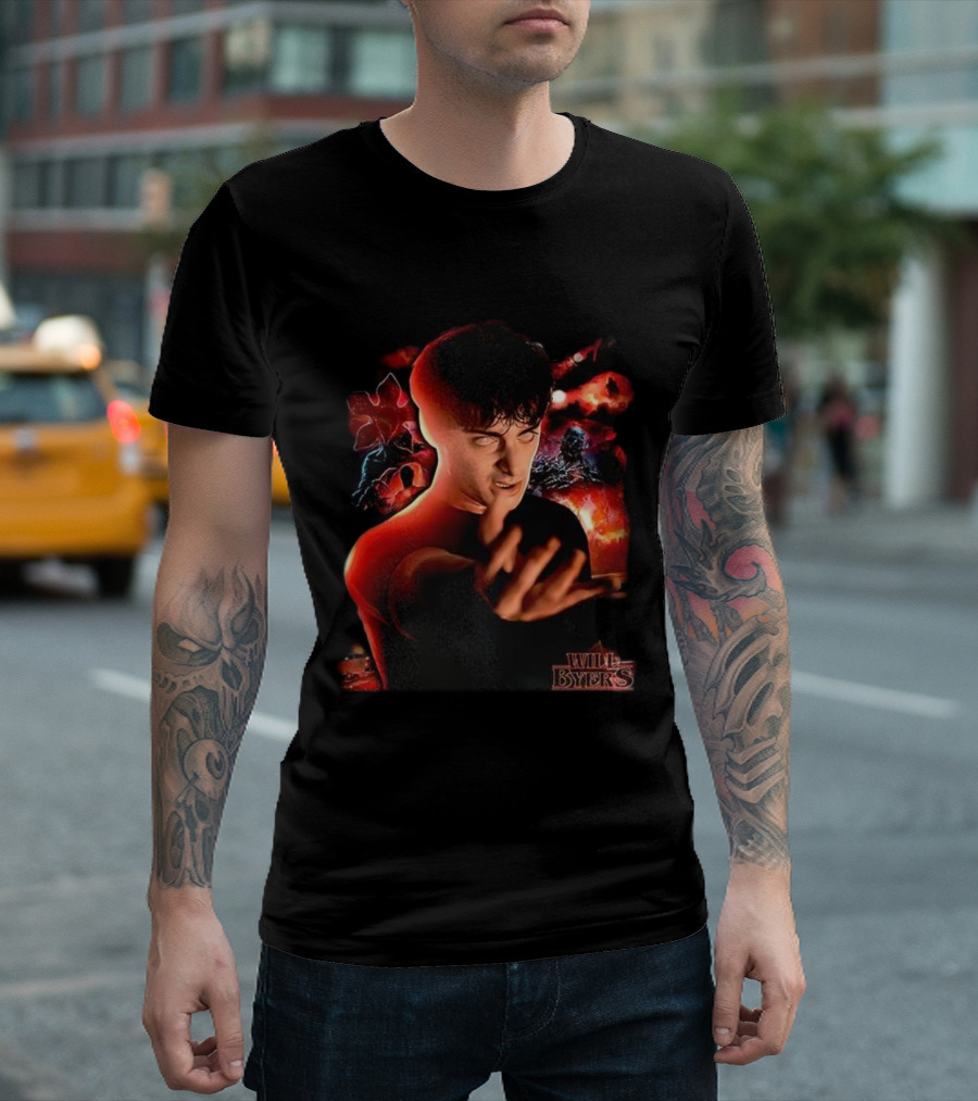Stranger Things Will Byers Character Dark Red Fiery Background T-Shirt