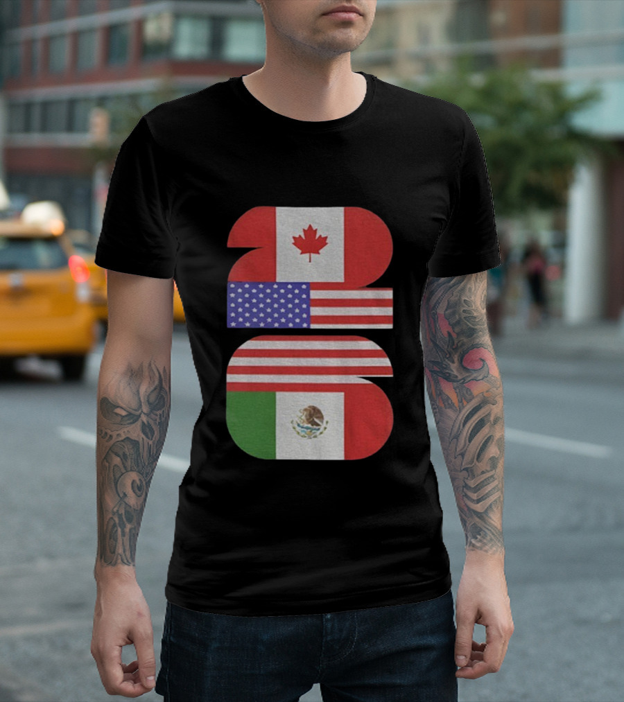 World Cup 2026 USA Canada Mexico Flag Design T-Shirt