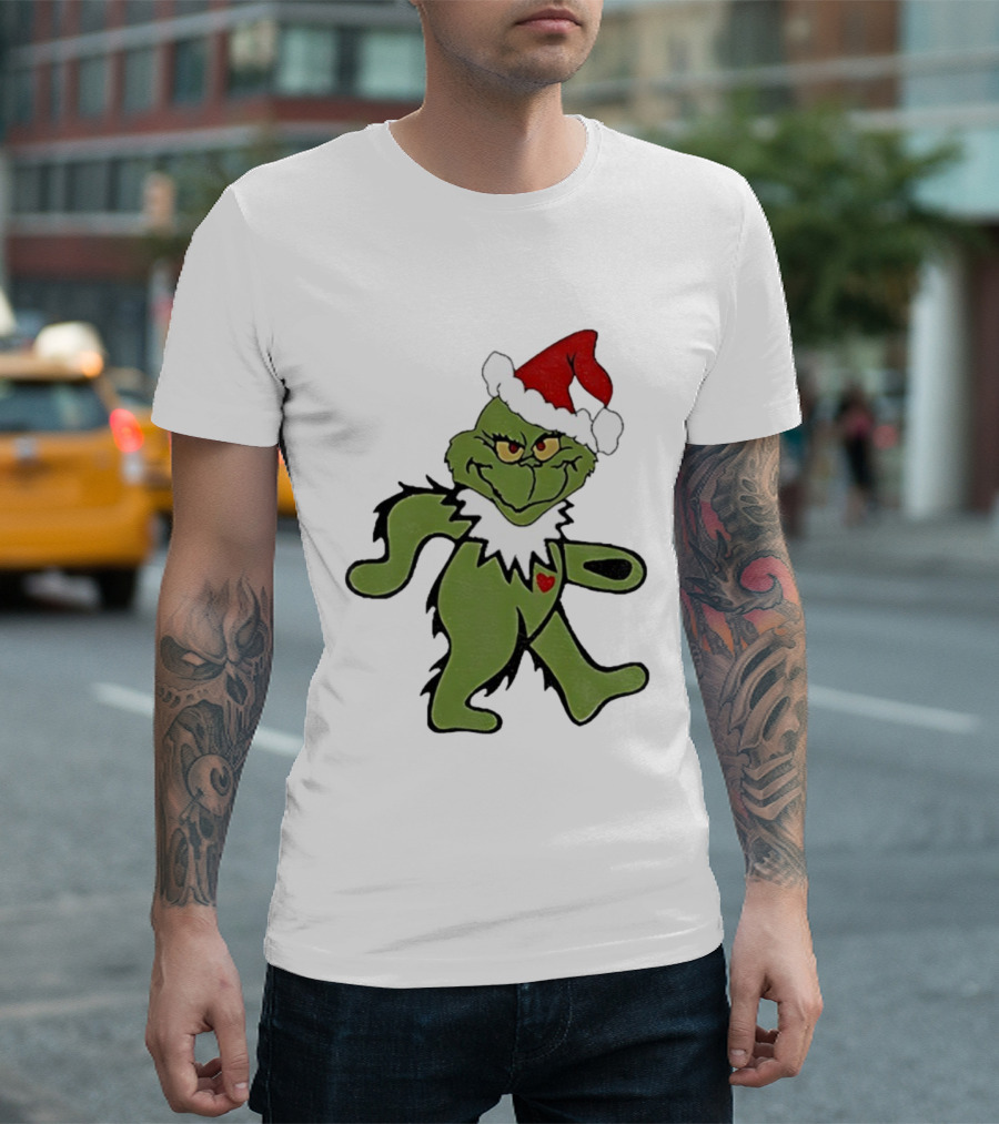 Grinch Wearing Santa Hat Dancing Bear Christmas T-Shirt