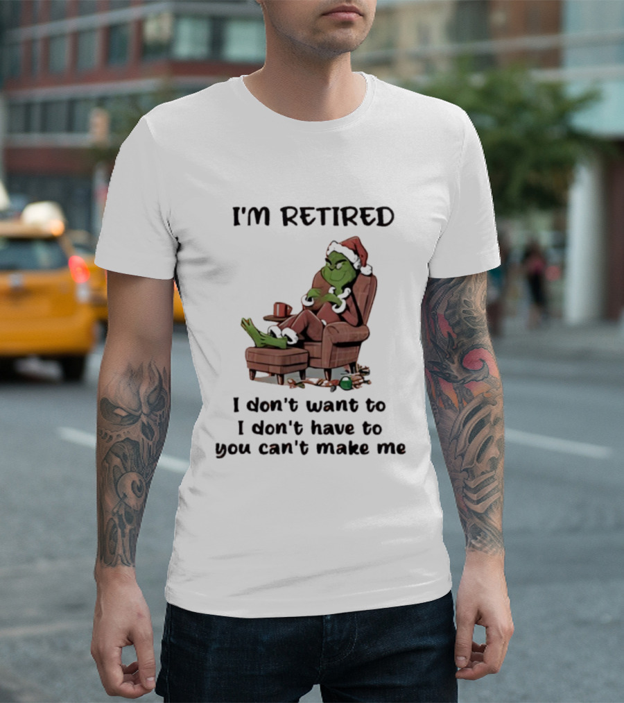 Grinch Santa Claus I'm Retired I Don't Want To I Don't Have To You Can't Make Me T-Shirt