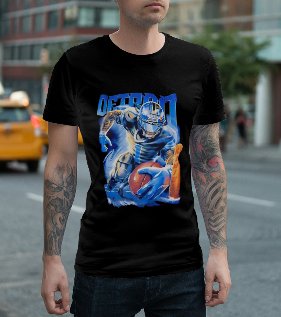 Detroit Football Player Blue Burst Action Art T-Shirt