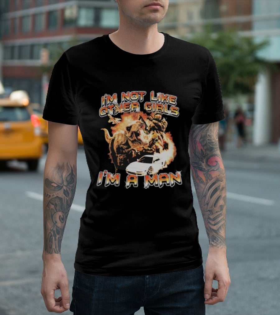 I'm Not Like Other Girls I'm A Man Dinosaur Explosion Warrior Car T-Shirt