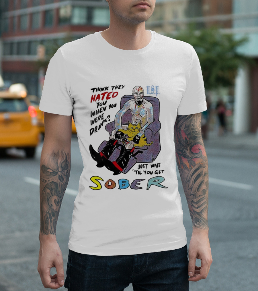 Hated Baseball Sober Comic Art With Cat And Colorful Text T-Shirt