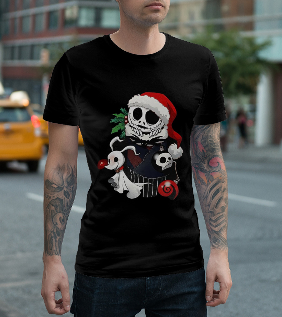 Jack Skellington Zero Santa Hat The Nightmare Before Christmas Holiday Stocking Stuffer T-Shirt