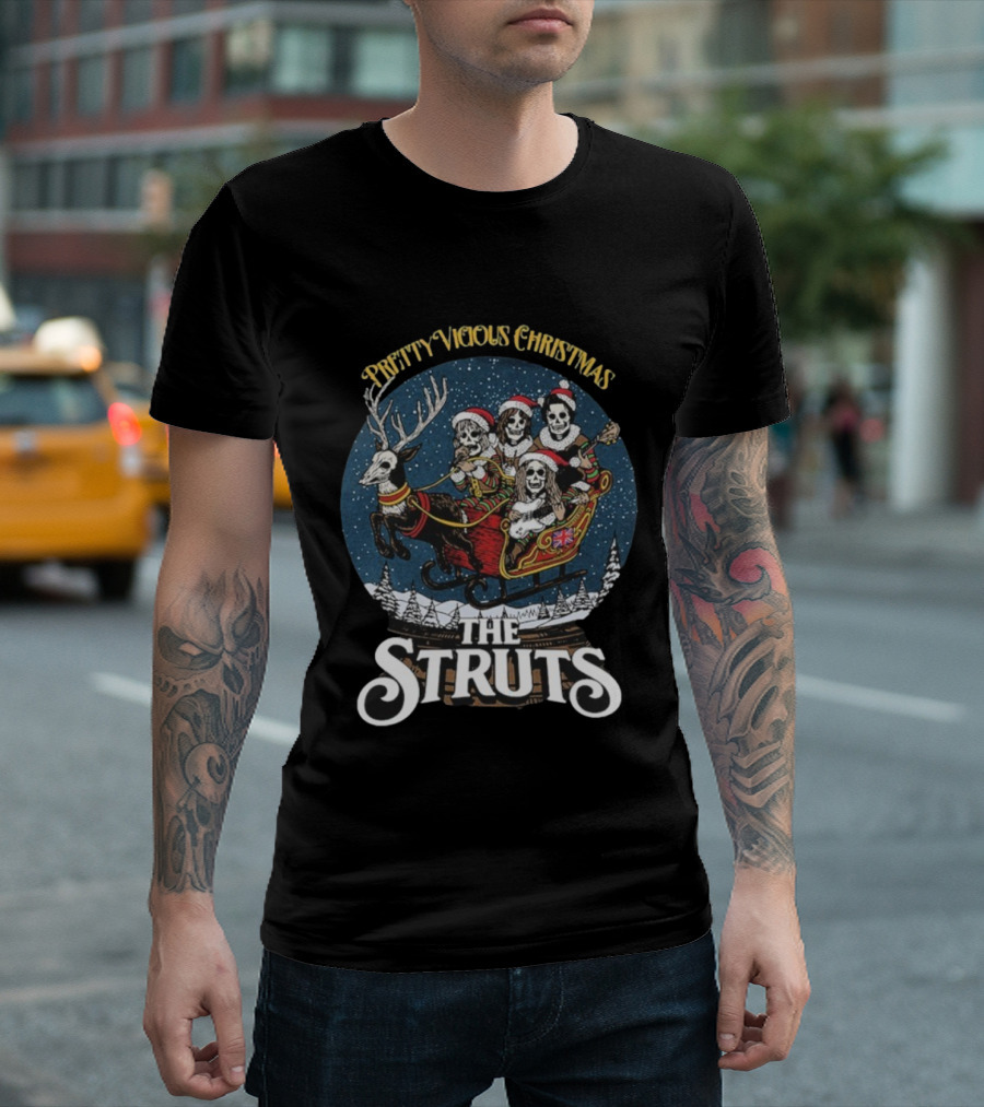 The Struts Pretty Vicious Christmas Reindeer Snow Globe Skeleton Sleigh T-Shirt