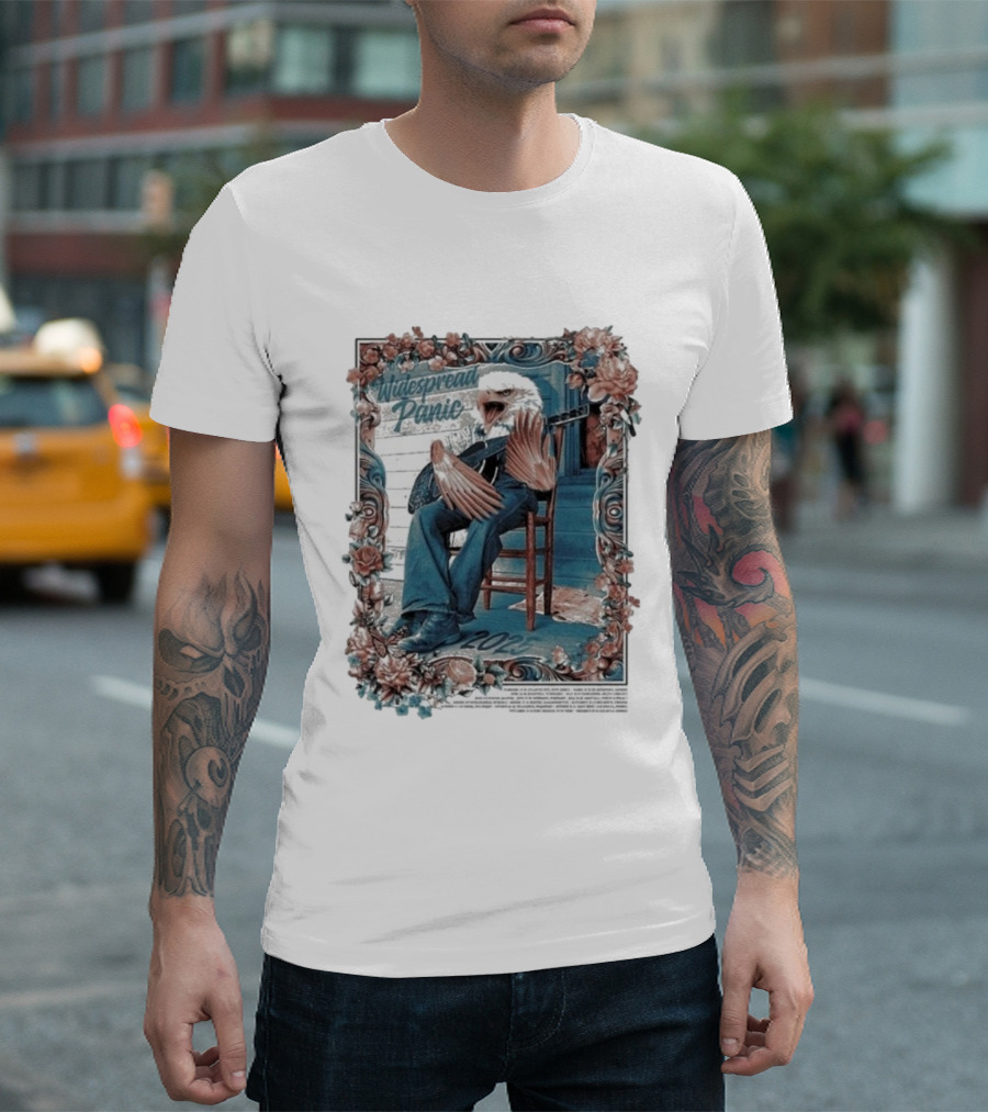 Widespread Panic 2025 Eagle Tour With Guitar And Floral Frame T-Shirt