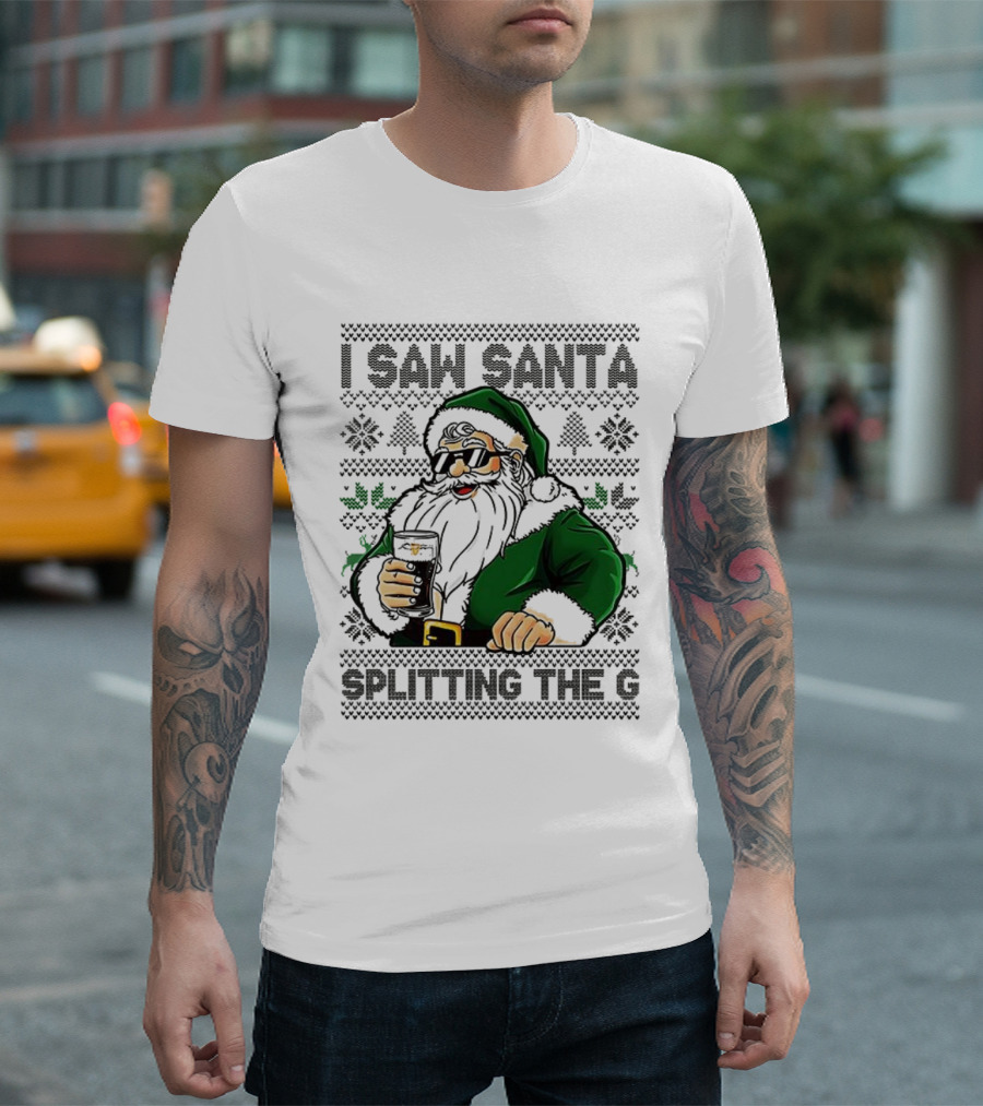 I Saw Santa Drinking Beer Splitting The G Ugly Christmas T-Shirt
