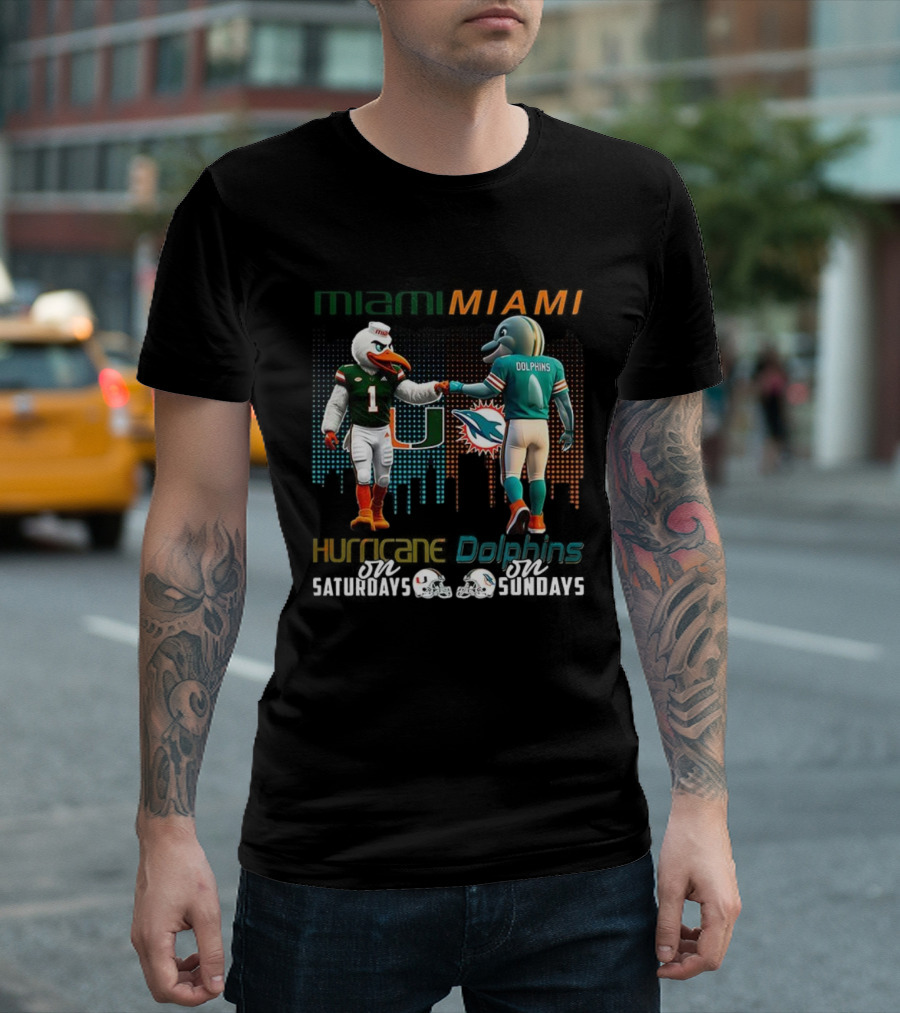 Miami Football Mascots Hurricanes Saturdays Dolphins Sundays T-Shirt