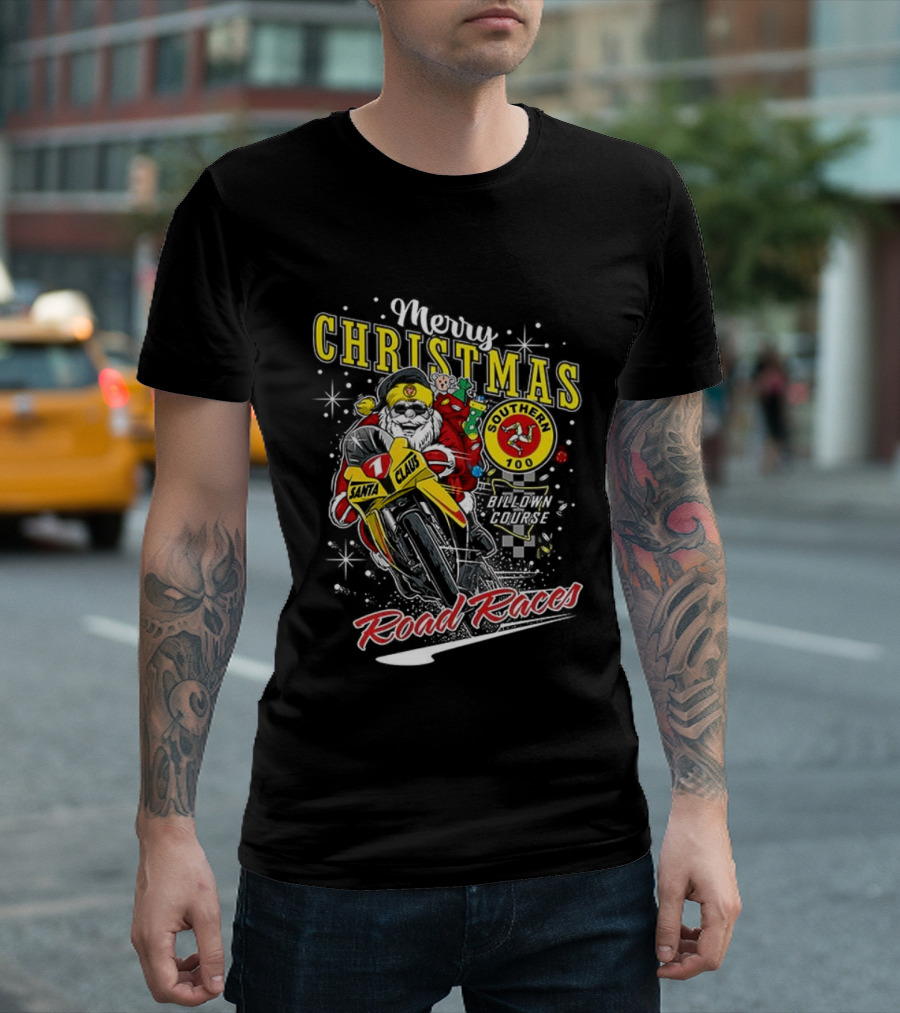 Merry Christmas Santa Claus Motorcycle Road Races Holiday T-Shirt