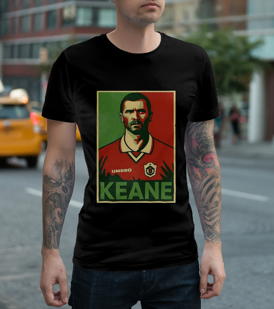 Roy Keane Umbro Football Icon T-shirt — on-model street pose, front view.