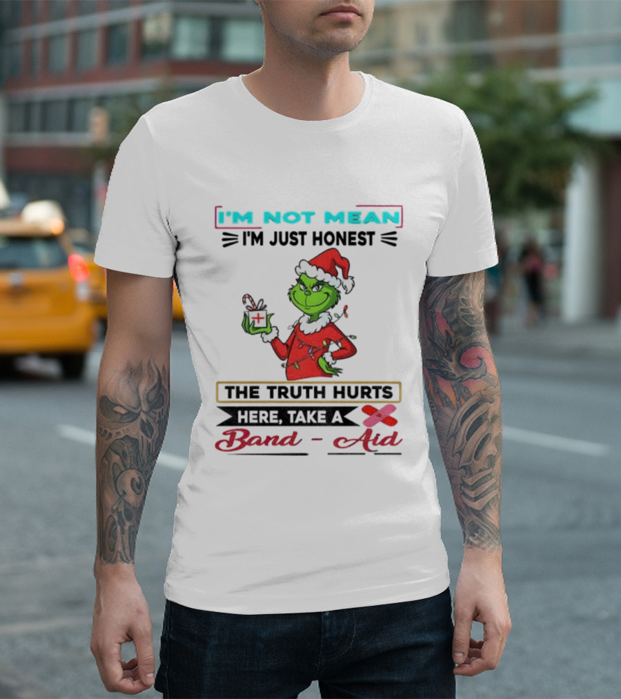 Grinch Santa Hat I'm Not Mean I'm Just Honest The Truth Hurts Here Take A Band Aid Christmas T-Shirt