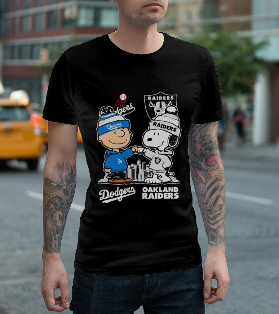 Charlie Brown Snoopy Dodgers Raiders Los Angeles Oakland Apparel T-Shirt