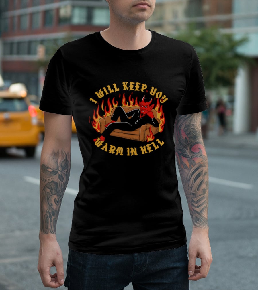 Devil Reclining On Sofa Flames I Will Keep You Warm In Hell T-Shirt