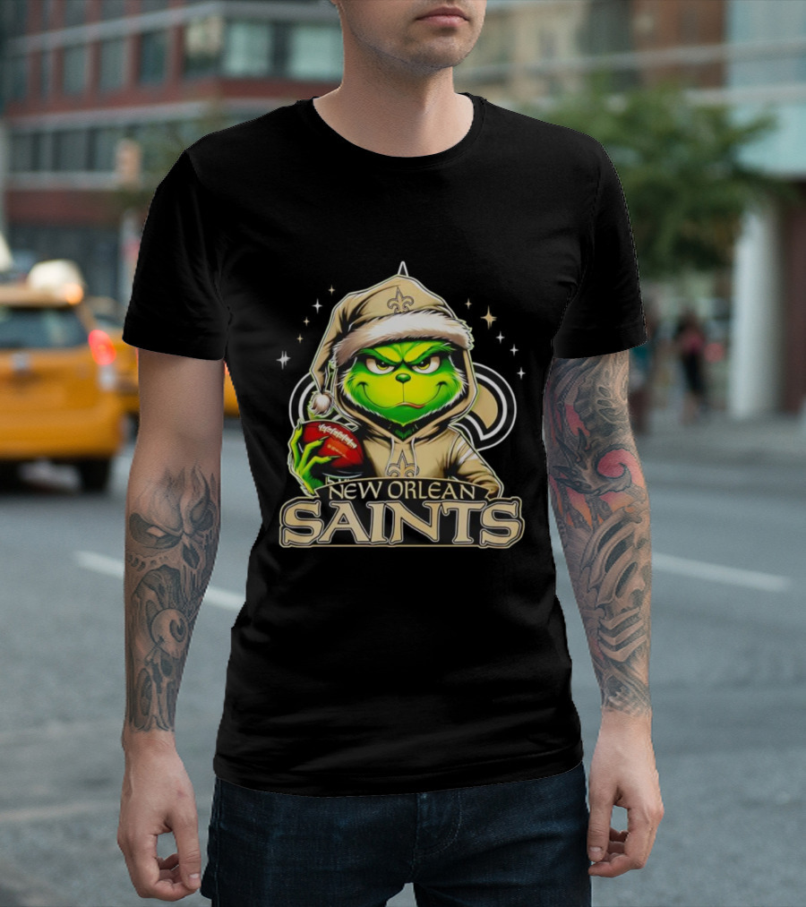 Grinch In Santa Hat With New Orleans Saints Football Christmas T-Shirt
