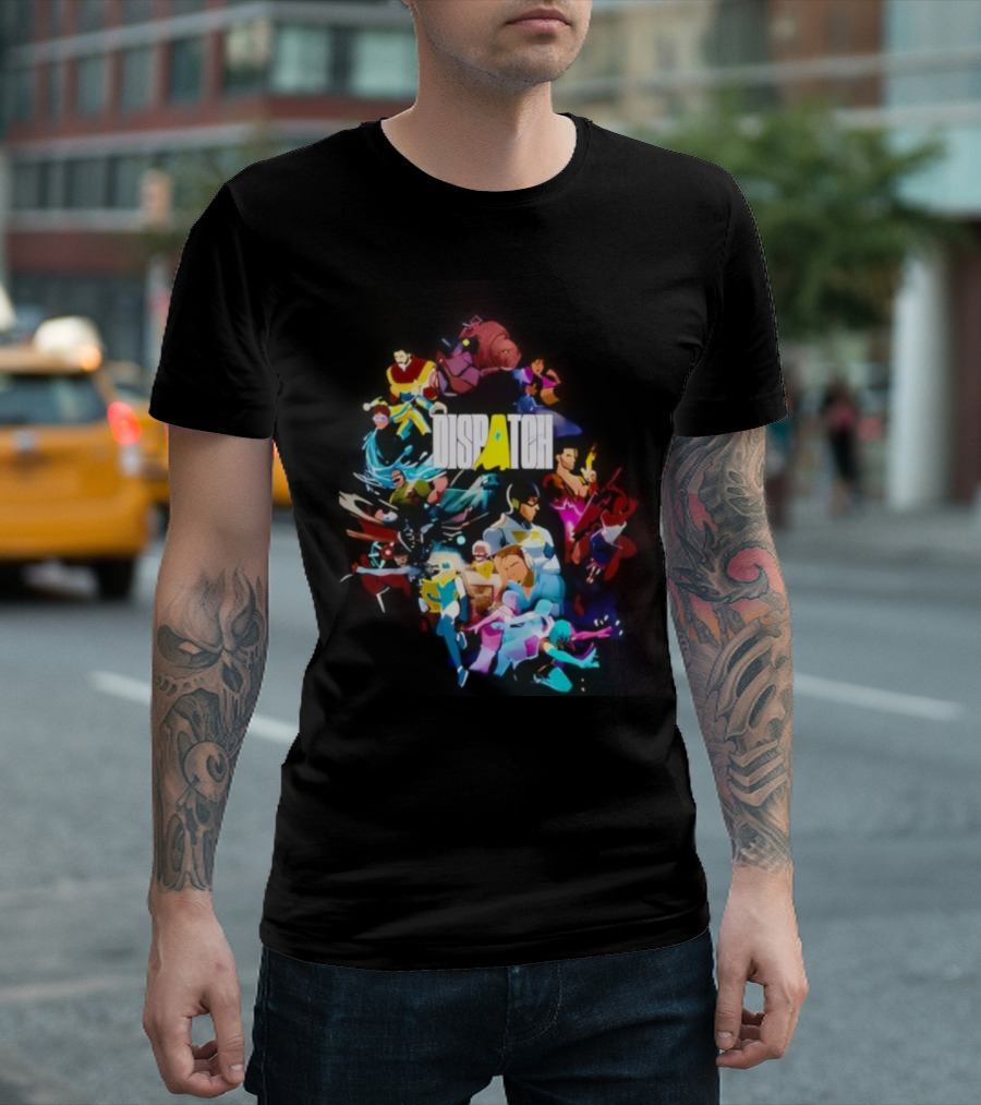 Dispatch Neon Heroes Video Game Characters Vibrant Ensemble T-Shirt