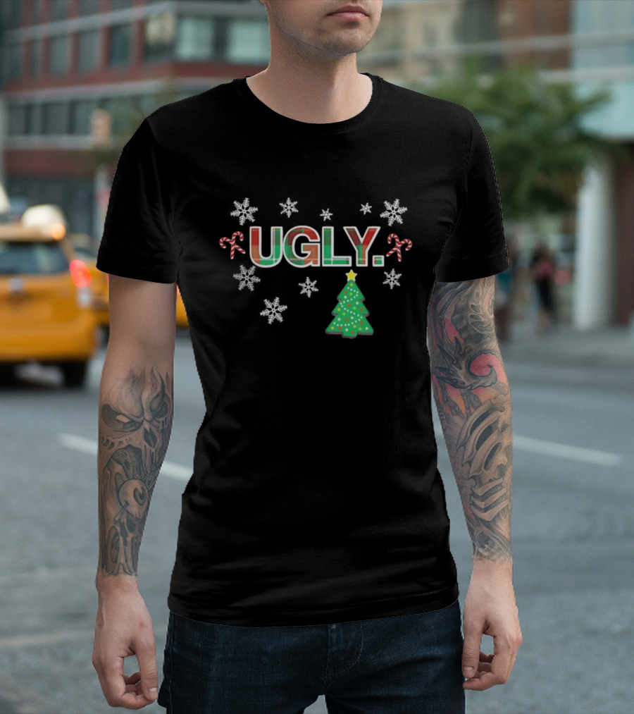 UGLY Christmas Candy Cane Tree Snowflakes T-Shirt