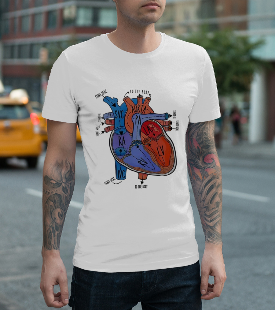 Heart Anatomy Blood Flow SVC RA RV IVC Aorta PA PV LA LV T-Shirt