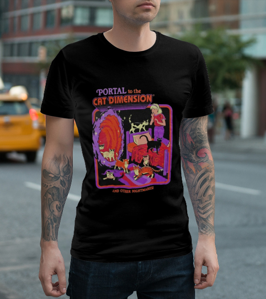 Portal To The Cat Dimension Vintage Nightmare Scene With Cats And Bed T-Shirt