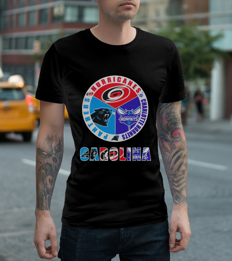 Carolina Hurricanes Panthers Charlotte Hornets Sports Collaboration T-Shirt