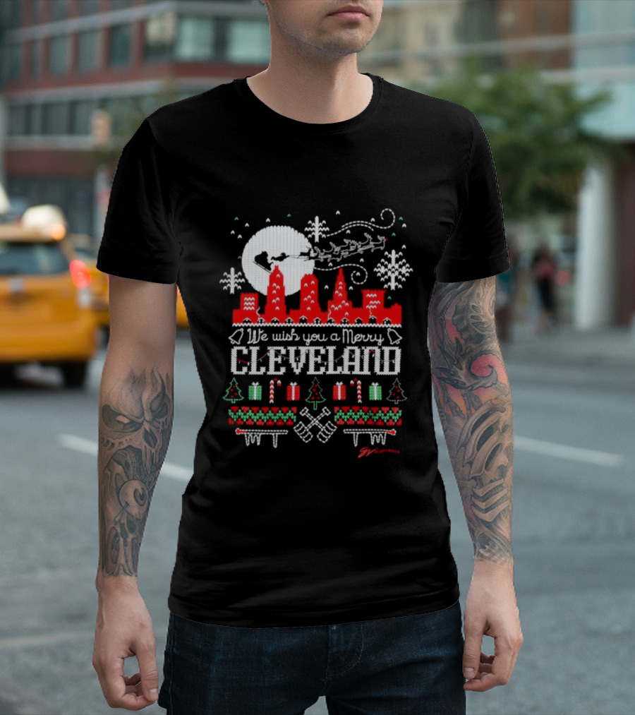 We Wish You A Merry Cleveland Christmas Skyline Santa And Gifts T-Shirt